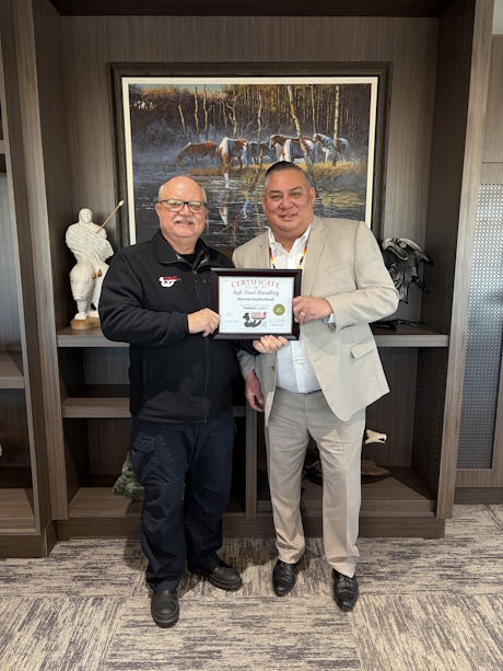 Food Safety 1st, Russell Scott presents Harris Sutherland with Saskatchewan Indian Gaming Authority, the 19,000th Food Safety 1st certificate ... Congratulations Harris and a big Thank you to SIGA.
